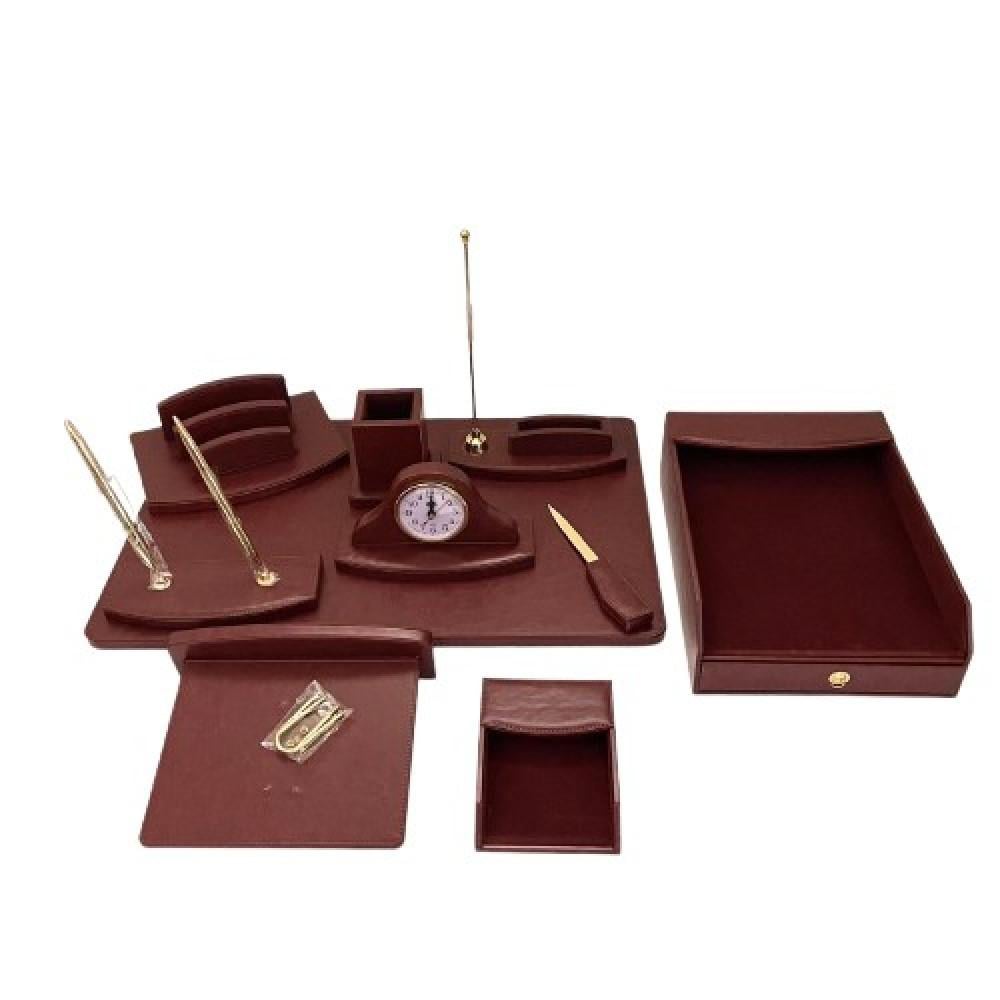 طقم مكتب بني جلد فاخر – 10 قطع لتنظيم مكتبي راقٍ وأنيق